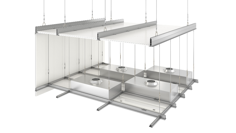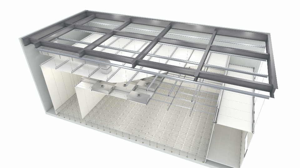 メンテナンスを容易にする、独自開発されたシステム天井です。 点検時の軽歩行が可能なだけでなく、専用の天井フレームはフレキシブルなライン変更に対応しています。 高い気密性と柔軟なメンテナンス性を兼ね備えた、最適な空間創りをご提案します。