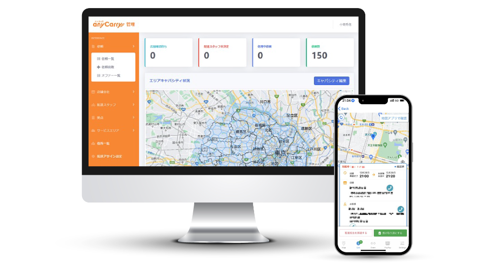 エニキャリの配送管理システム(TMS)は、SaaS形式で安価にご利用いただけます。配車・ルート作成の自動化に加え、専用ドライバーアプリによるリアルタイムの配送状況可視化により、オペレーションコストの大幅な削減が可能です。 ▶詳しくはこちら中間物流を排除し、最新テクノロジーで配送効率を向上させることで、現行の宅配コストを大幅に削減します。また、当日配送など大手宅配では難しいサービスも可能にしています。配送状況をシステムで可視化し、フロントサイトと連携することで、ユーザーの利便性を大きく向上させることができます。▶詳しくはこちら 全国47都道府県にわたる複数の配送事業者のネットワークを活用し、店舗からの即時配送を可能にします。システムで連携された多様な配送事業者の空きリソースを可視化した大規模ネットワークにより、全国チェーンの店舗配送にも対応可能です。▶詳しくはこちら 【主な事例・ニュース】 ・エニキャリの配達代行システムが国内でヒットしている理由とは? 日本マクドナルドとエニキャリ小嵜代表が対談